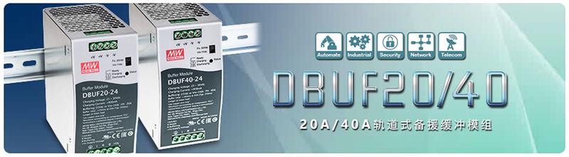 明緯新推出了軌道式20A/40A備援緩沖模塊DBUF20/40系列,可搭配DIN rail電源供應器為負載的短暫備援,當AC市電短暫停電或瞬斷時DBUF20/40將會啟動緩沖功能提供穩定24確保系統運行,緩沖時間長短則依據負載電流而定,DBUF20在20A條件下可緩沖350ms,DBUF40在40A條件下可緩沖250ms。