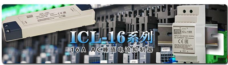 本產品采內建溫度保險絲及繼電器做為抑制電流主要組件, 可防止內部旁路電路發生故障時過熱,有別于一般簡易式的NTC解決方案,大幅提高了使用可靠度,此外,為了滿足不同安裝方式,明緯特別規劃了軌道型(ICL-16R)及細長平放型(ICL-16L)兩種型式供選用。