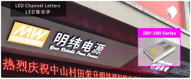 明緯的ERP-200系列為經濟型200W防雨淋薄型電源,滿足景觀亮化市場對較小功率電源的需求。ERP-200系列采用灌半膠無風扇設計,取得信息類(IEC62368-1) CB/CQC/EAC認證。目前,明緯防雨淋電源產品線已涵蓋200~400W,由ERP-200、ERP-350、ERPF-400三大系列組成,可充分滿足客戶室內外LED景觀燈具、燈條、發光字、廣告標識等應用。