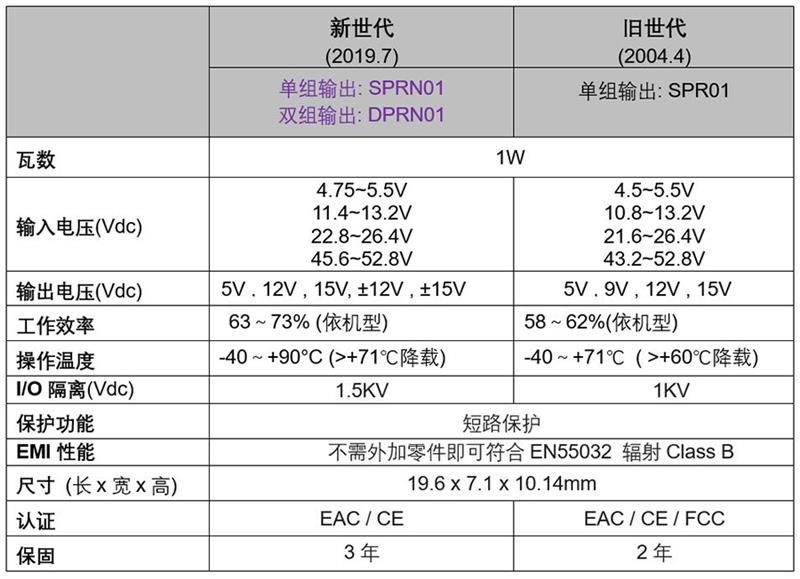 為持續(xù)提升DC-DC轉(zhuǎn)換器產(chǎn)品規(guī)格競(jìng)爭(zhēng)力,明緯針對(duì)已上市15年的SPR01老舊機(jī)型,重新設(shè)計(jì)新一代單組輸出SPRN01系列并擴(kuò)增雙組輸出DPRN01系列,新推出款1W 低價(jià)超小型SIP6 單排pin型式具隔離穩(wěn)壓DC-DC轉(zhuǎn)換器~SPRN01及DPRN01系列。