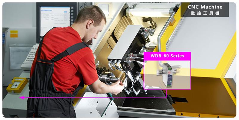 WDR-60系列主要特點有 : 180~550Vac超寬壓輸入,可安裝于一般單相230Vac電力系統或三相330~550Vac電力系統擷取其中一相來使用,大大地增加了系統配置上的彈性、32mm窄面寬、-30~+60℃可滿載工作、過電壓保護等級 (OVCIII)可節省系統配置成本、符合重工業等級電磁耐受(EN61000-6-2)之要求及完整保護功能…..等,合適的應用包含工業控制、半導體制程設備、工廠自動化、機電設備、船舶相關應用等。